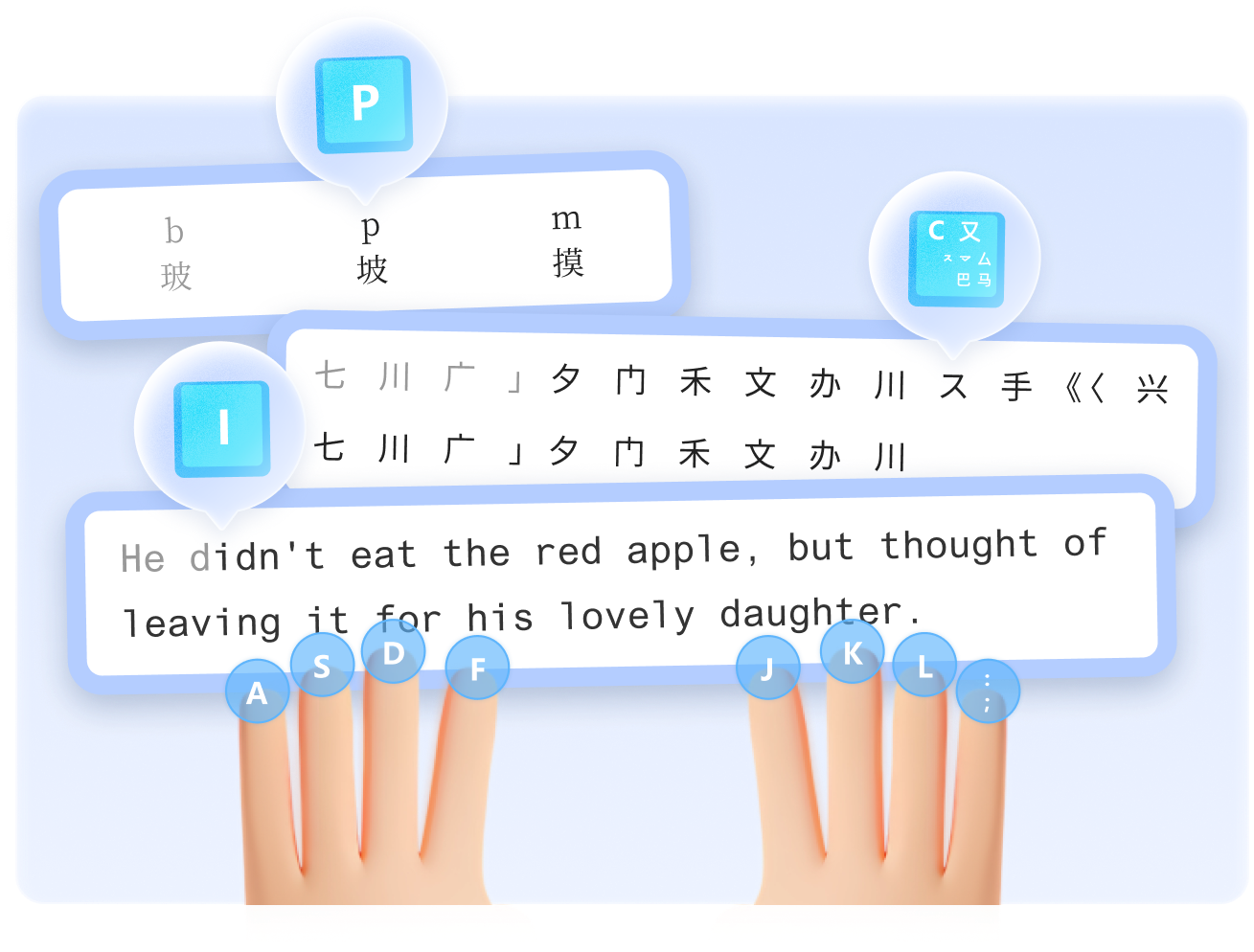 提供英文打字、拼音打字、五笔打字三种主流输入法的针对性练习,满足各种打字练习需求。