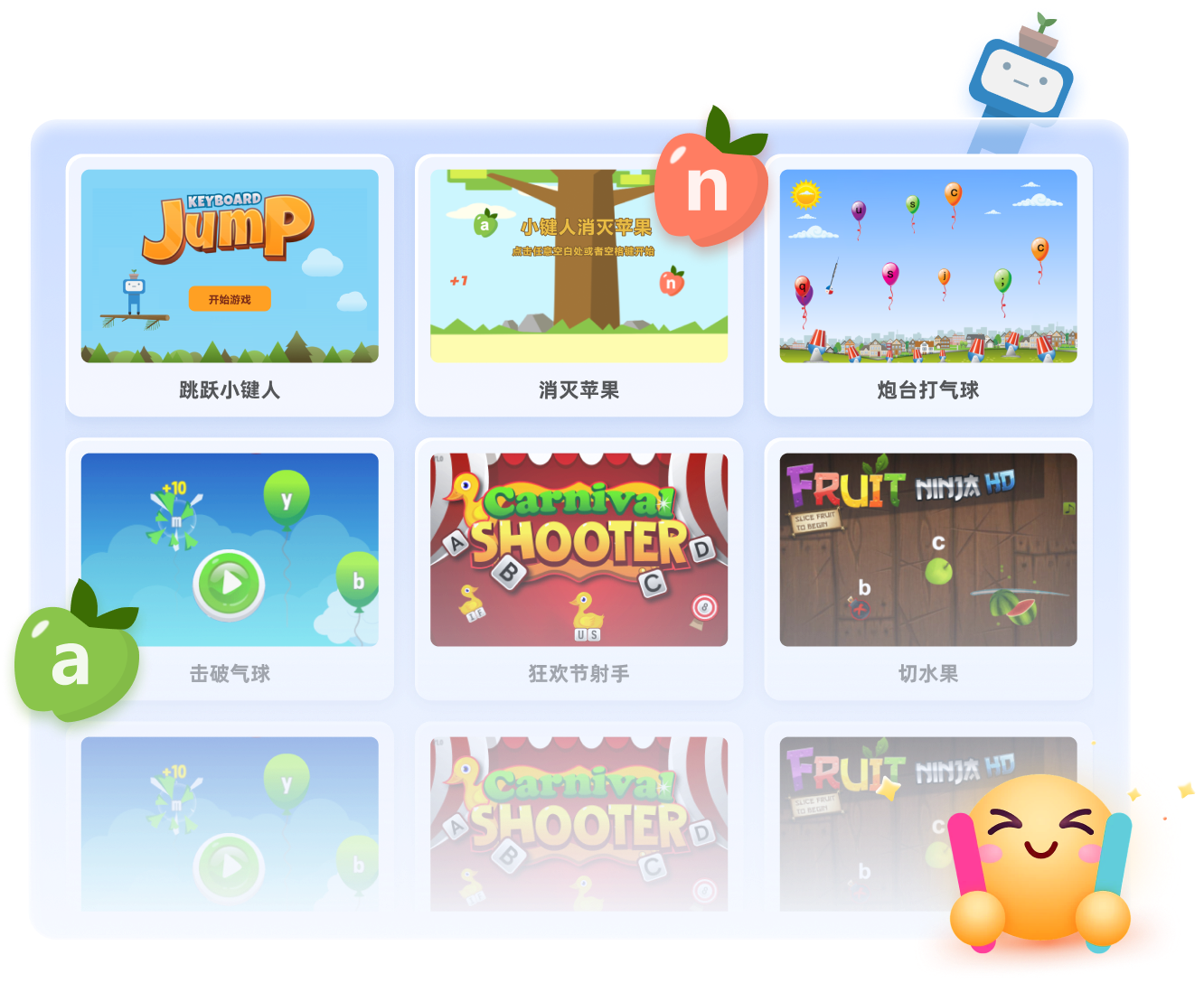 内置经典打字游戏,将枯燥练习转化为学习乐趣,孩子们在玩乐中不知不觉地掌握了打字的基本理念和使用。